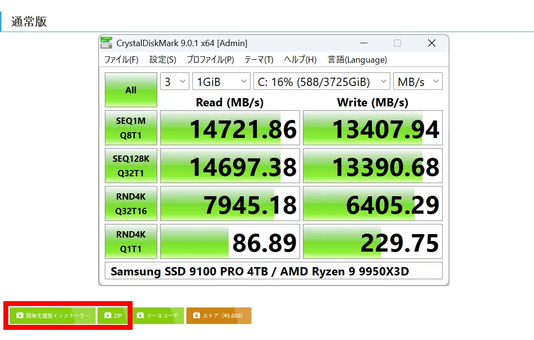 CrystalDiskMark ダウンロードと準備