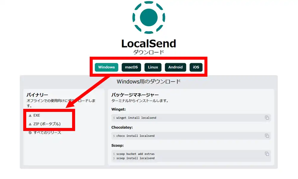 LocalSend ダウンロードと準備