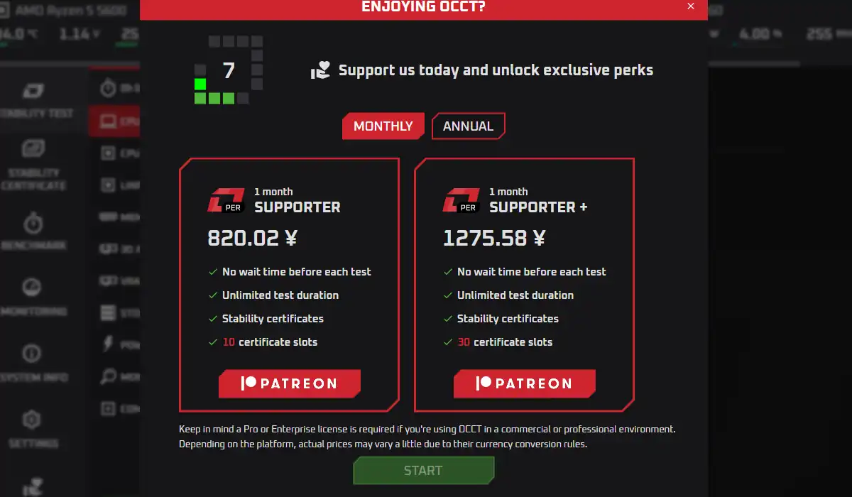 OCCTは個人利用に限り無料で使用出来るフリーソフトウェアですが、企業や営利目的での使用にはライセンスの購入が必要です。対応OSはWindows 11/10含む7以上の他、Linux版も配布されています。