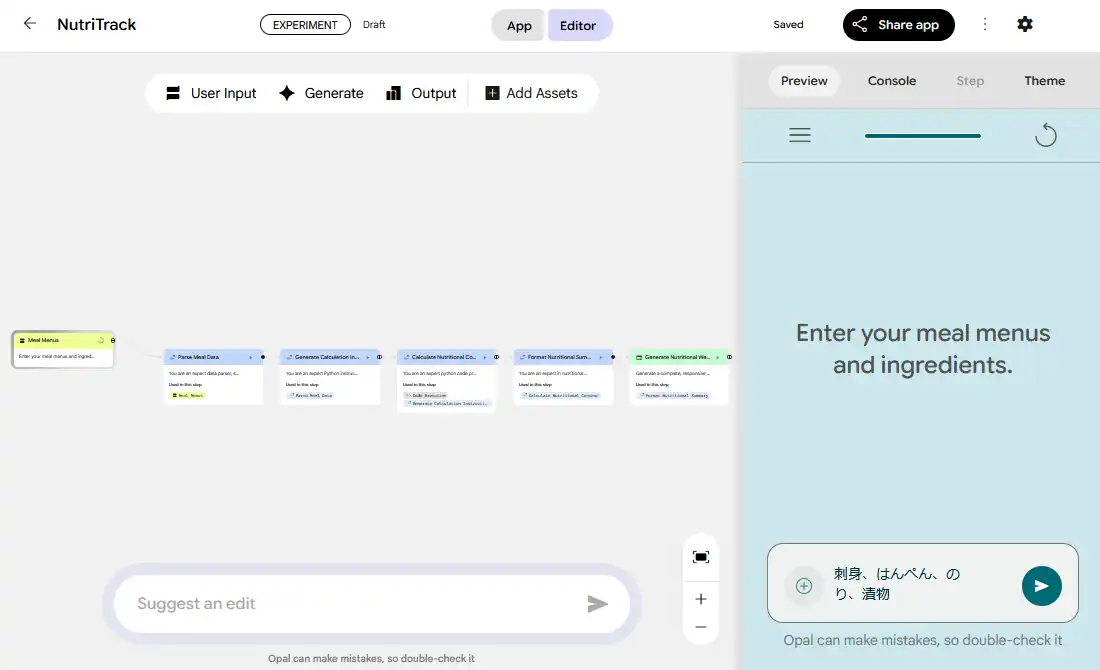 ミニAIアプリを作成出来るGoogleのサービス、Opalを試してみる