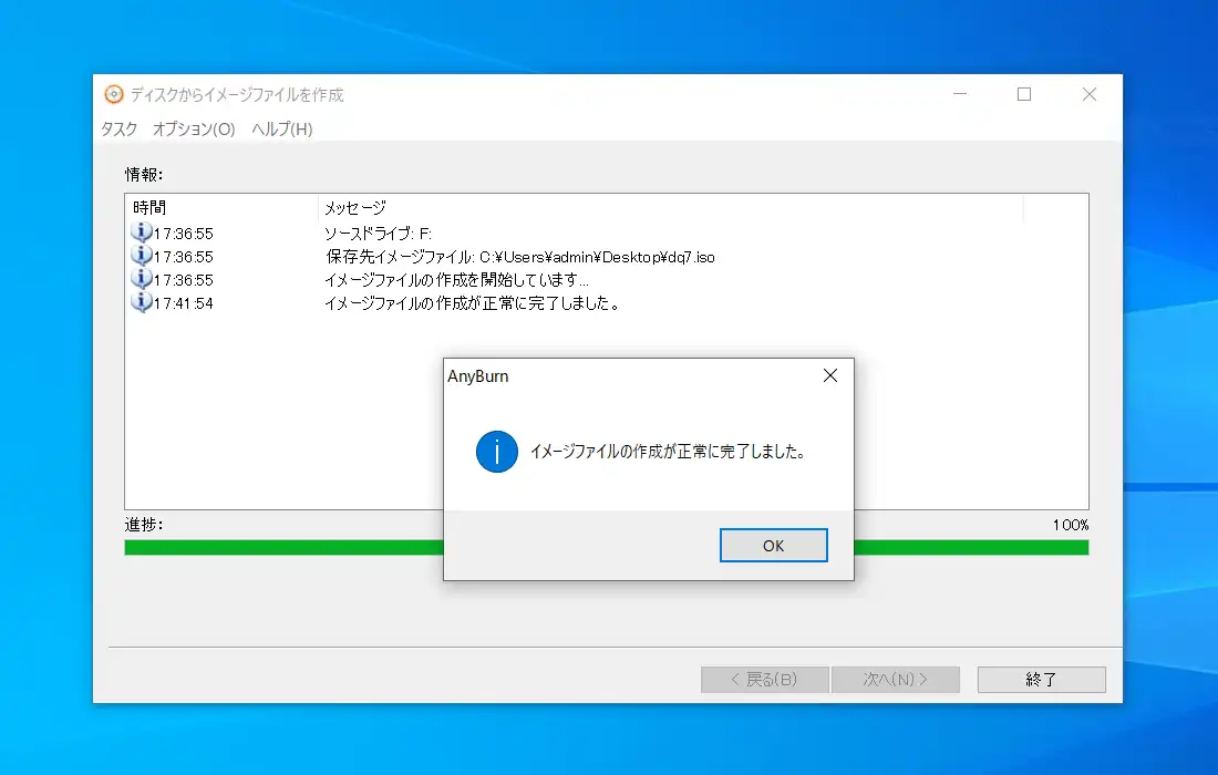 ISOイメージファイルでの保存が完了すると以下のような画面が表示されます。後はゲームディスクのISOイメージファイルをPCSX2のスキャン対象のフォルダに置いておくだけです。