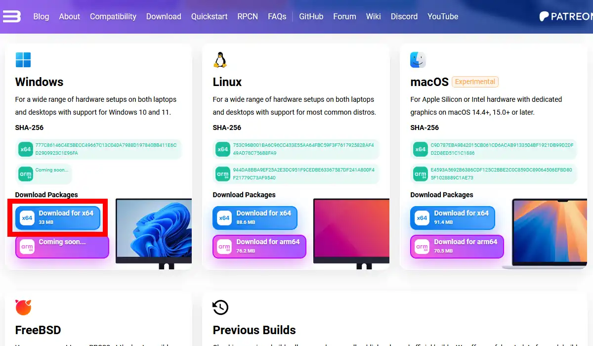 対応OSはWindows 11/10の他、Linux、macOS、FreeBSD用が開発、配布されています。Windowsの場合は別途Visual C++ 2019 x64が必要ですが、殆どの環境では既にインストールされている筈です。また、エミュレータの使用や自身が所有するゲームソフトの複製を行い個人利用するのは違法ではありませんが、無断で複製されたゲームソフトをダウンロードするのは違法となります。
