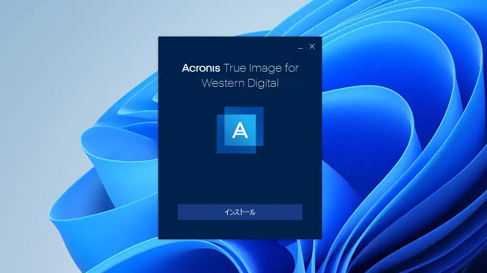 ここではAcronis True Image for Western Digitalをインストールしていきますが、他も殆ど同じような手順となっています。ダウンロードしたインストーラを実行した時に「ユーザーアカウント制御」画面が表示されたら「はい」で許可。下の画面が表示されるので「インストール」からインストールしていきます。